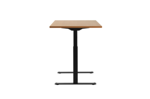 Platte aus Spanplatte mit pflegeleichter Melaminharzbeschichtung in Dekor Buche. Plattenform rechteckig. T-Fußgestell in schwarz. Höhenverstellung durch 2 Elektromotoren unterstützen Sie bei einer komfortablen Höhenverstellung auf Knopfdruck. Funktionen: Abspeichern und automatisches Abrufen von programmierten Tischhöhen dank Memoryfunktion. Der automatische Kollisionsschutz stoppt sofort bei Widerstand von oben oder unten und sorgt somit für absolute Sicherheit.