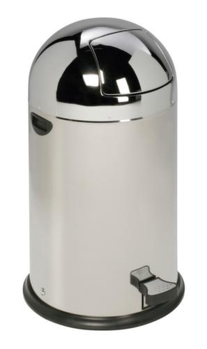 "longDescription": "<h2>Push- und Tretabfalleimer</h2><strong>einfache Entleerung durch seitliche Griffmulden</strong><br><ul><li><strong>Geruchssicher und hygienisch</strong> - selbstschließende Einwurfklappe aus poliertem Edelstahl</li><li><strong>Bodenschonend</strong> - mit Bodenring aus Kunststoff</li><li><strong>Leicht zu reinigen</strong> - herausnehmbarer Innenbehälter aus verzinktem Stahl mit Griffen</li></ul><br><strong>Sie haben die Wahl:</strong><br><ul><li><strong>Per Hand oder Fuß</strong> - Deckelöffnung manuell oder per Tretpedal</li><li><strong>Auffällig oder elegant</strong> - aus Stahlblech mit farbiger Pulverbeschichtung oder aus Edelstahl</li></ul><br>Durch seine Optik ist dieser Mülleimer im Retro-Look ein Blickfang und passt sowohl ins Büro als auch in repräsentative Bereiche wie Foyer, Empfangsbereiche oder Verkaufsräume. Der Abfalleimer hat eine Garantie von 3 Jahren. <br><br>Die Einwurfklappe aus Edelstahl ist durch ihr Material abwischbar und leicht hygienisch sauber zu halten. Seitliche Griffmulden ermöglichen ein bequemes Anheben zur einfachen Entleerung des Abfalleimers. Für den Fußbodenschutz sorgt ein breiter Bodenring aus Kunststoff.<br>",