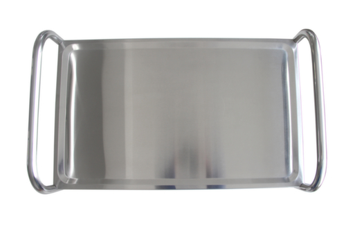 Etage(n) aus Edelstahl mit Abrollrand. Edelstahlkonstruktion. Leicht zu manövrieren und verfahren durch 4 Lenkrollen, Feststeller an zwei Lenkrollen gewähren bei Bedarf stets einen sicheren Stand. Rad Ø 100 mm. Räder mit bodenschonender Gummi-Bereifung. Radanordnung parallel.