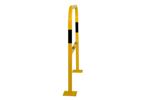 Die wichtigsten Maße des UDOBÄR Rammschutzsystems auf einen Blick:Konstruktion mit Knieholm. Aus Stahl mit schlag- und kratzfester Pulverbeschichtung in gelb/schwarz. Zum Anschrauben über vorhandene Löcher.