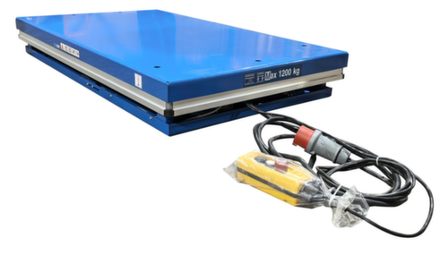 Aus Stahl mit schlag- und kratzfester Pulverbeschichtung in RAL5017 Verkehrsblau. Hubausführung elektrisch mit Handtaster für heben und senken. Einfachschere aus Stahl mit schlag- und kratzfester Pulverbeschichtung in RAL5017 Verkehrsblau. Verwindungssteife Stahlkonstruktion. Plattform mit Befestigungsbohrungen in der Grundfläche. In diese können bei Bedarf die mitgelieferten Hebeösen eingeschraubt werden, um den Hubtisch sicher mit Hebegurten transportieren zu können. Kabel 3,5 m lang. Mit 400 V/50 Hz. Schutzart IP54: Staubablagerung im Inneren, Spritzwasser alle Richtungen. Isolationsklasse F.