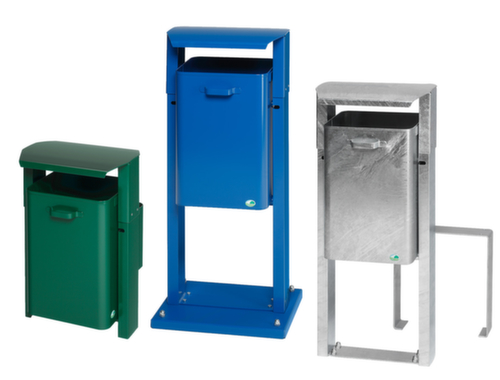"longDescription": "<h2>Abfallbehälter</h2><strong>wetterfest und für den Außenbereich geeignet</strong><br><ul><li><strong>Langlebig und rostfrei</strong> - aus verzinktem Stahlblech</li><li><strong>Diebstahlsicher</strong> durch Dreikantschloss</li><li><strong>Sofort einsatzbereit</strong> - inklusive Montagematerial</li></ul><br><strong>Sie haben die Wahl:</strong><br><ul><li><strong>Schnelle oder extra standfeste Montage</strong> - Pfosten- oder Wandbefestigung, zum Aufdübeln oder Einbetonieren</li><li><strong>Mit Regenschutz oder offen</strong> - mit oder ohne Schutzdach</li><li><strong>Mehr Farbe</strong> - zusätzlich mit Pulverbeschichtung</li></ul>",