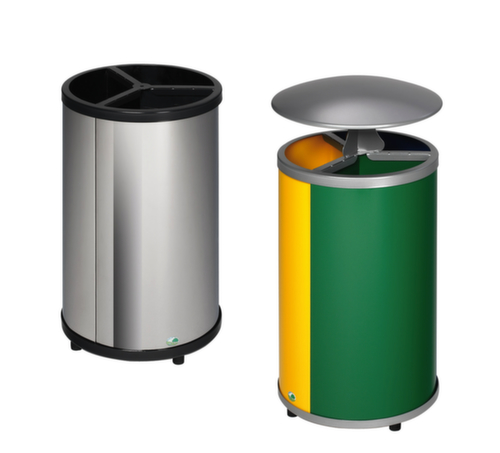 "description": "3x30l, HxØ 950x420mm, m. Schutzdach, Korpus Stahl gelb/blau/grün",