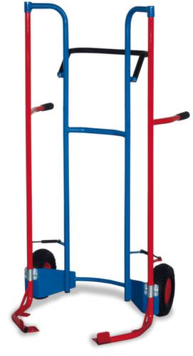 Die wichtigsten Maße der VARIOfit Transportkarre auf einen Blick:Eine leichtere Kippfunktion wird durch den günstigen Schwerpunkt in unmittelbarer Nähe der Achse gegeben. Ladungssicherung durch Hebelsystem mit Offenhalte- / Klemmfunktion. Konstruktion aus Stahl. Gestell mit schlag- und kratzfester Pulverbeschichtung in RAL5010 Enzianblau. Räder mit bodenschonender und geräuscharmer Luft-Bereifung auf Stahlblech-Felge. Rad Ø 250 mm. Naben mit für den Dauerbetrieb geeignetem Kugellager.