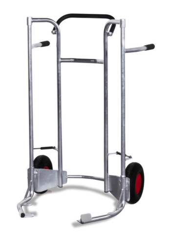 Die wichtigsten Maße der VARIOfit Transportkarre auf einen Blick:Eine leichtere Kippfunktion wird durch den günstigen Schwerpunkt in unmittelbarer Nähe der Achse gegeben. Ladungssicherung durch Hebelsystem mit Offenhalte- / Klemmfunktion. Konstruktion aus Stahl. Gestell mit korrosionsschützender Zinkbeschichtung. Räder mit bodenschonender und geräuscharmer Luft-Bereifung auf Stahlblech-Felge. Rad Ø 260 mm. Naben mit für den Dauerbetrieb geeignetem Kugellager.