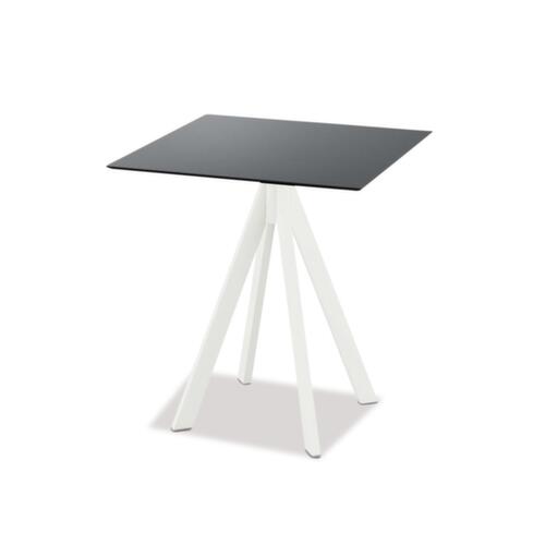 4-Fußgestell aus Stahl in weiß. Platte aus HPL in schwarz.