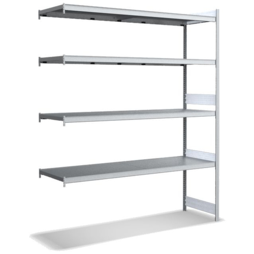 "metaDescription": "Weitspannregal mit Holzböden - Anbaufeld, HxBxT 2500x2016x624mm, Fachl. 350kg, 4xSpanplatte, einseitig, Traversen verzinkt",