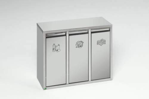 "metaDescription": "Wertstoffsammelstation, 3 x 7 l - 3x7l, HxBxT 470x580x270mm, Innenbehälter Kunststoff, Korpus Edelstahl",