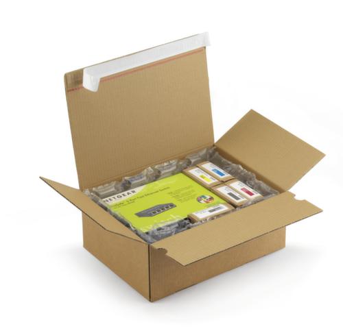 Die wichtigsten Details auf einen Blick:Für leichte bis mittelschwere Packstücke bis 10 kg. Widerstandsfähig gegen Feuchtigkeit und Temperaturschwankungen. Schnell aufgerichtet, denn durch leichten Druck auf die Seiten rastet der Automatikboden des Kartons ein. Verschließbar mit Haftklebeverschluss. Karton wiederverwendbar.