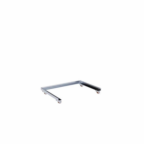 Maßlich auf die Europalette abgestimmt. 3-seitig. Die offene Seite eignet sich zur Nutzung mit Hubwagen und Gabelstaplern. Plattform offen. Aus Stahl galvanisch blau verzinkt. Leicht zu manövrieren und verfahren durch 4 Lenkrollen. Rad Ø 50 mm. Mit hoch belastbarer, geräuscharmer Polyurethan-Bereifung.