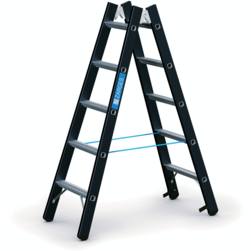 "metaDescription": "ZARGES Schwerlast Sprossenstehleiter Z600 bis 250 kg belastbar - beidseitig, 2x5 Sprossen, Holm L 1,5m, eloxiert",